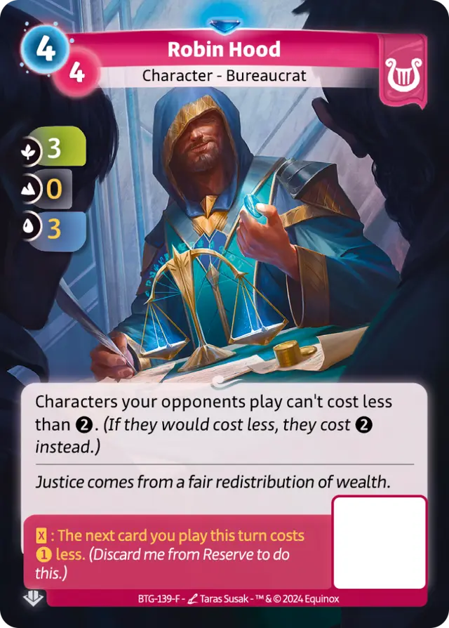 Beaucoup d’ajustements liés à l’équilibre du jeu sont réalisés durant les dernières semaines de développement d’une édition, notamment les coûts et statistiques des cartes. Spécifiquement, parmi de nombreux autres changements qui ont eu un impact positif sur le jeu, nous avons également décidé de réduire le coût de Robin des Bois, pour éviter que la carte ne devienne injouable.