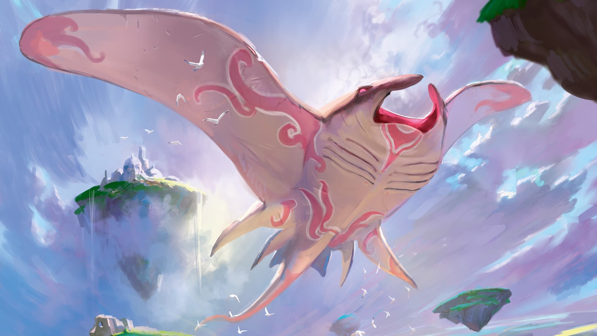 Outre son envergure qui avoisine le kilomètre, cette raie arbore une robe qui diffère de celle de ses congénères marins, dont la coloration et les motifs dépendent de son état émotionnel. Si sa face ventrale est moins pigmentée, elle peut s'agrémenter d'entrelacs rougeâtres. Sa face dorsale est quant à elle de teinte orangée, et on y trouve là encore des circonvolutions carmines et mouvantes, similaires à des nuages stylisés, ou aux taches d'encre d'un test de Rorschach. Dernier point, la créature se déplace à l'aide de mouvements simultanés de ses nageoires pectorales, qui propulsent l'air vers l'arrière et lui donnent son impulsion, et de ses nageoires caudales, dont elle se sert pour s'orienter. Il se peut qu'elle ingurgite de l'Aérolithe pour voler, comme une poule avale des cailloux pour l'aider à digérer. Sa vitesse de vol est phénoménale pour un tel mastodonte. Des simulations sont effectuées pour calculer sa célérité maximale, et des modèles sont élaborés pour visualiser les turbulences qu'il laisse dans son sillage.