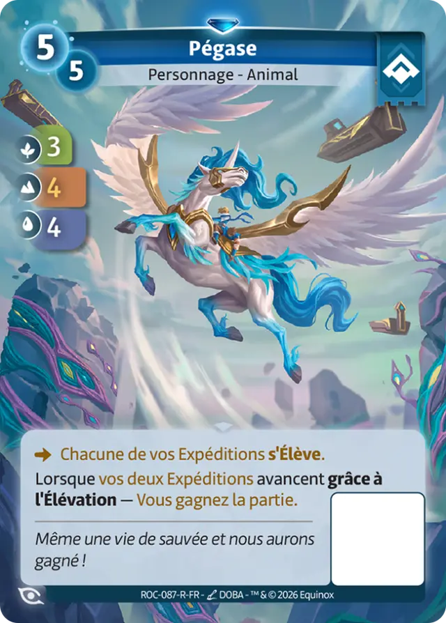 Pégase représente la philosophie que l’Ordis tente de suivre coûte que coûte face à la catastrophe en cours. Quand tout est perdu, il faut se satisfaire du moindre succès. Dans la défaite, sauver même un seul individu doit être considéré comme une victoire. Et c’est cela que la Faction s’évertue à faire : sauver ce qui peut l’être. Pégase vole au-dessus de la cité en train de s’effondrer sous les nuages, à la recherche de survivants. Il plonge dès qu’il en voit un, pour le prendre sur son dos et le rapatrier vers le port encore sous le contrôle des Asgarthi et des Reka, et les navires en partance.
