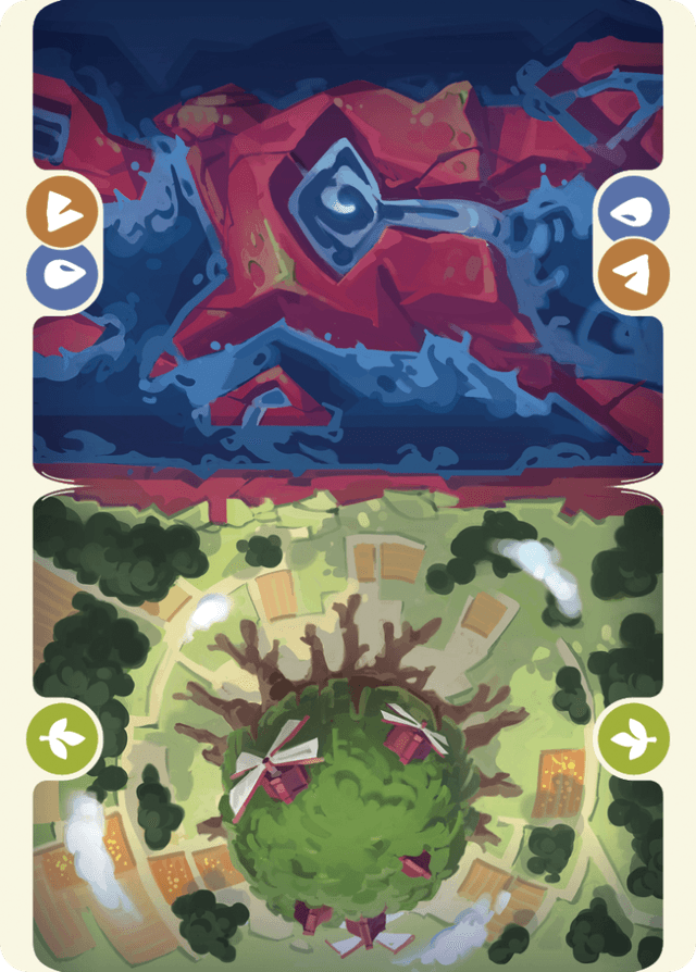 Construis tes propres scènes avec les cartes triptyques ! Certaines cartes de Murmures du Labyrinthe mettent en scène des moments de l'édition divisées entre trois personnages. Lorsque tu les combines, tu peux recréer une scène qui te donnera un aperçu de la vie de nos expéditions dans le nouvel avant-poste.